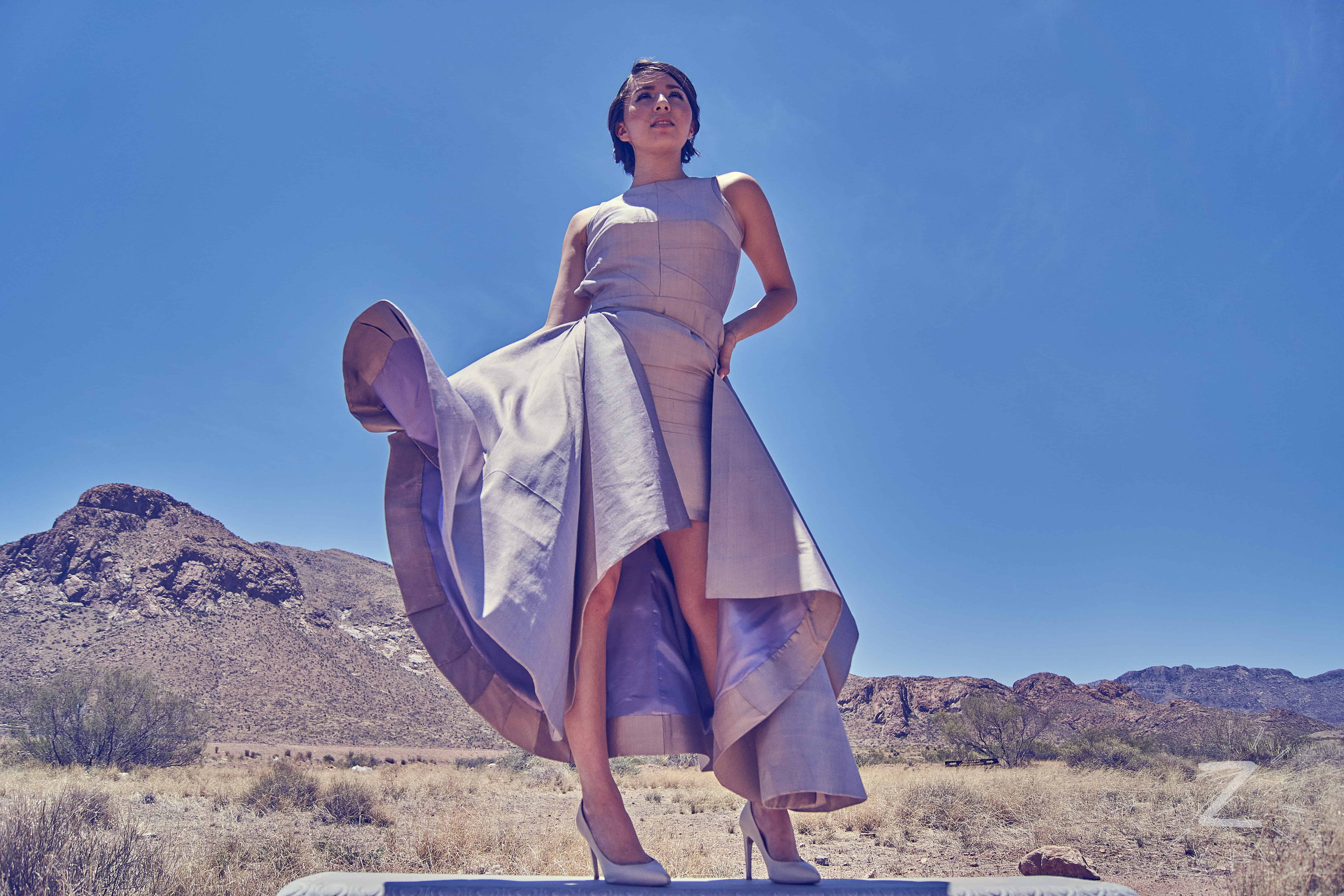 In 2012, a career highlight for Zayra Estrada was her stunning solo show at the El Paso Club as one of the signature Tom Lea Month events. Each evening gown of the collection was inspired by a Tom Lea painting, including the gown inspired by Lea’s famous “Rio Grande” landscape. Estrada designed that dress for Tom Lea Institute founder Adair Margo who wore it to El Paso’s American Institute of Architects Beaux Arts Ball in El Paso, Texas.